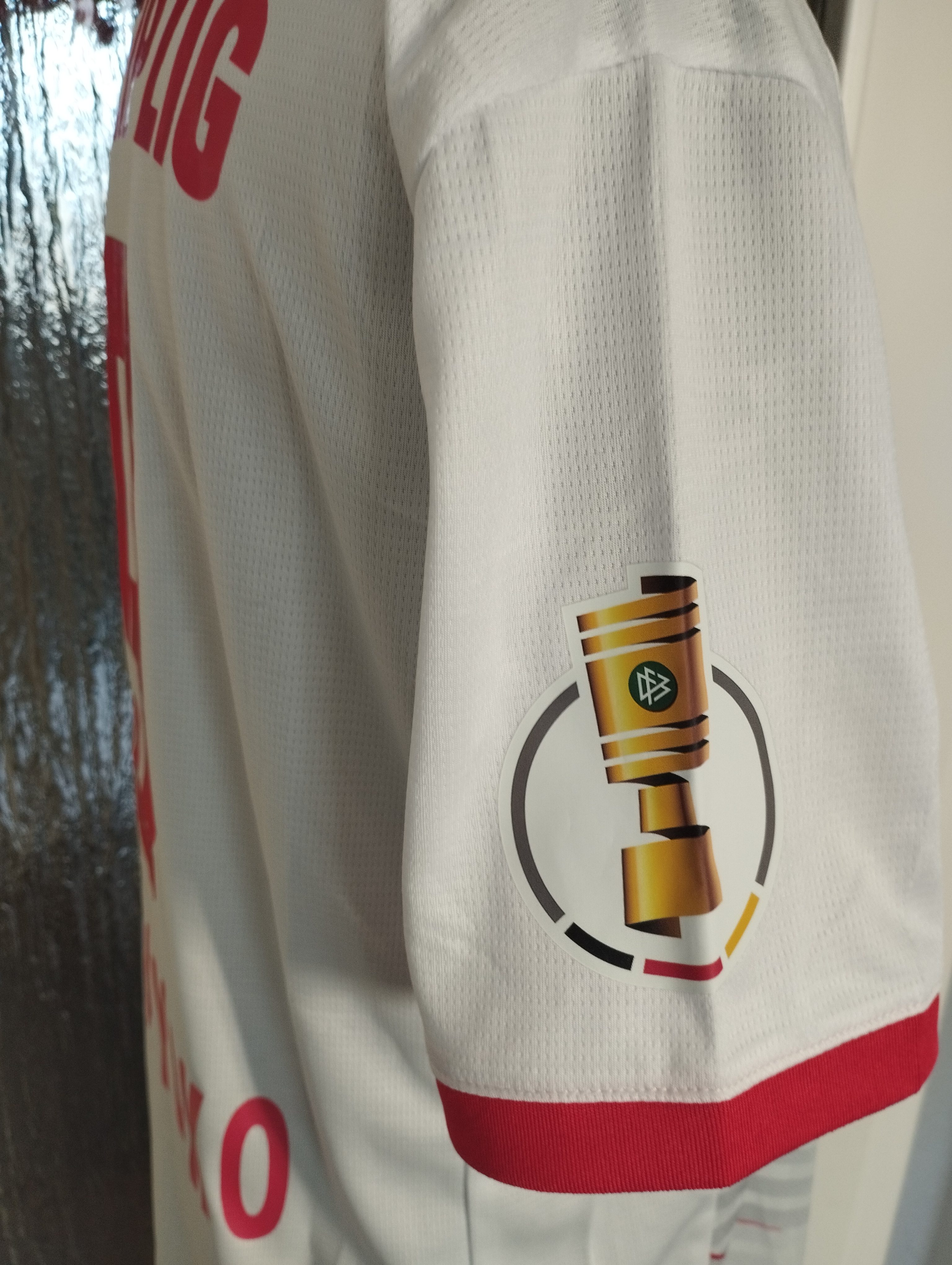 The jersey is made of a nice fabric and is very comfortable to wear. However, since I'm from the city, go to the stadium regularly, and therefore know the original very well, I'm a bit more critical of the design. Therefore, I have to deduct a star. There's a red line at the bottom hem that's too much (it's usually gray), the letters of the name on the back are too far apart, and the Bulls logo on the number has one line too many. But for people who aren't 100% familiar with the original, it won't be immediately noticeable. I would like to point out that the patch from the trophy can be selected here.